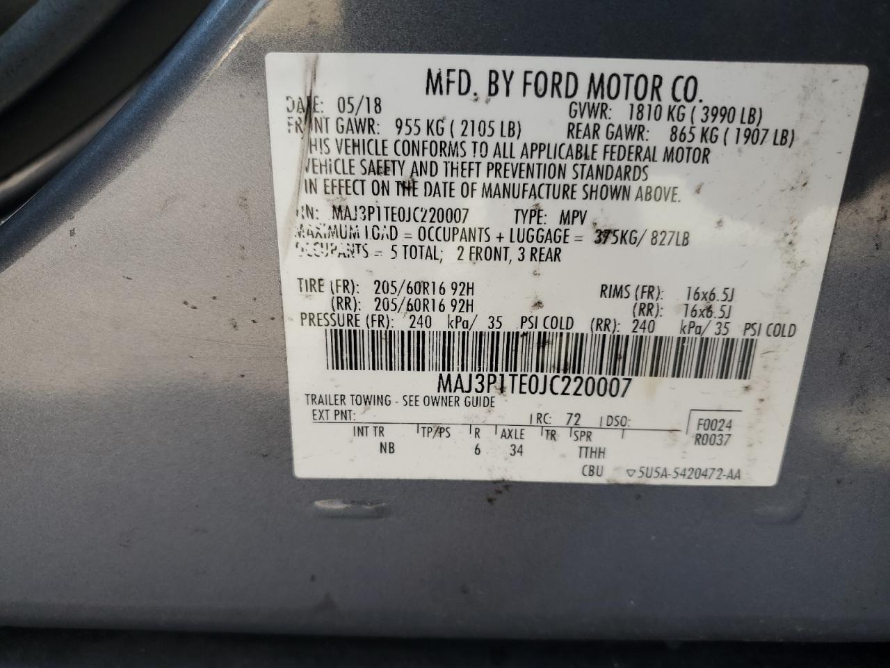 2018 FORD ECOSPORT - MAJ3P1TE0JC220007, колір - Сірий, 1.0, Бензин, із США