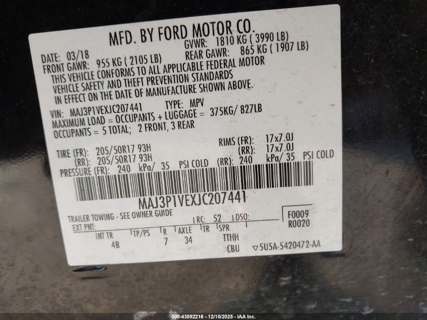 2018 FORD ECOSPORT - MAJ3P1VEXJC207441, колір - Чорний, 1.0, Бензин, Передній привід із США