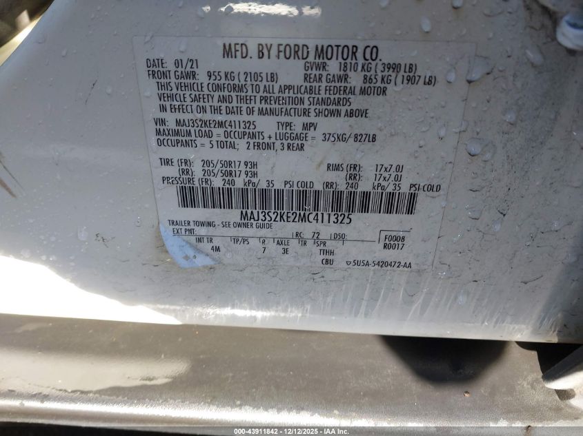 2021 FORD ECOSPORT - MAJ3S2KE2MC411325, колір - Білий, 1.0, Бензин, Передній привід із США
