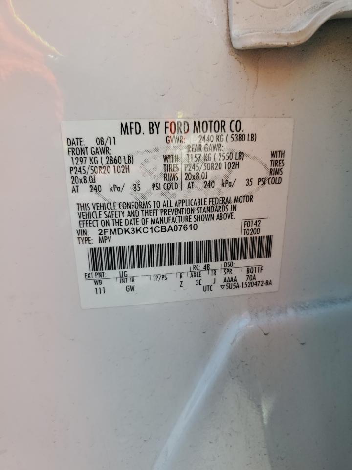 2012 FORD EDGE - 2FMDK3KC1CBA07610, колір - Білий, 3.5, Бензин, із США
