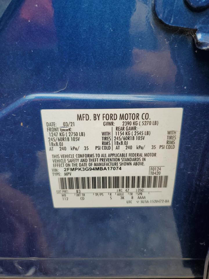2021 FORD EDGE - 2FMPK3G94MBA17074, колір - Синій, 2.0, Бензин, із США