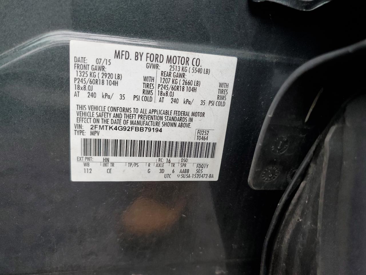 Колір Деревне вугілляЦиліндри 4Привід Повний привідVIN 2FMTK4G92FBB79194Стан НевідомоУшкодження НезначніДата аукціона 2025-10-10