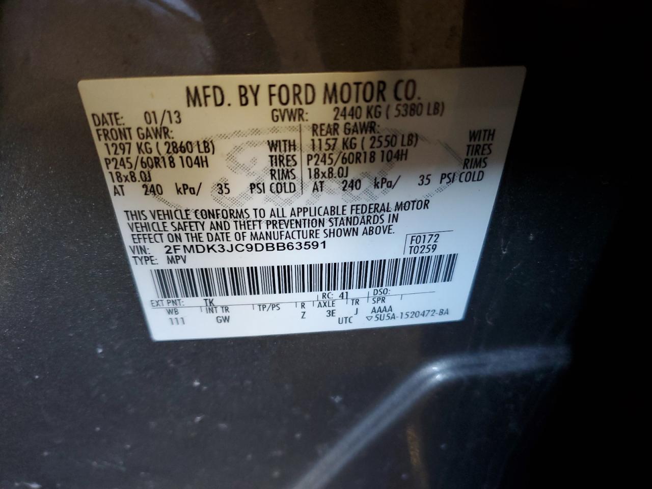 Колір ЗагарЦиліндри 6VIN 2FMDK3JC9DBB63591Стан Заводиться та їде (перевірено)Ушкодження Передня або задня