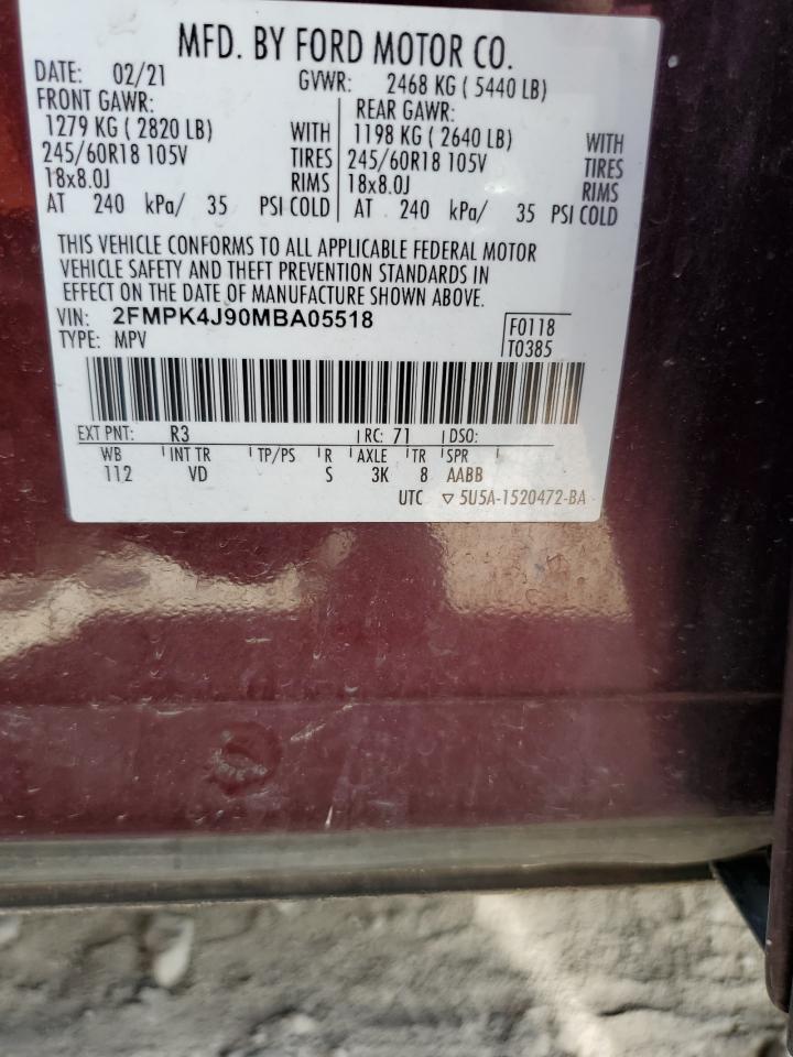 2021 FORD EDGE - 2FMPK4J90MBA05518, колір - Бордовий, 2.0, Бензин, Повний привід із США
