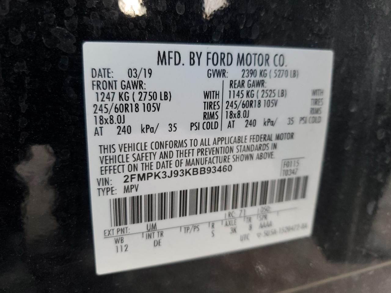 2019 FORD EDGE - 2FMPK3J93KBB93460, колір - Чорний, 2.0, Бензин, із США