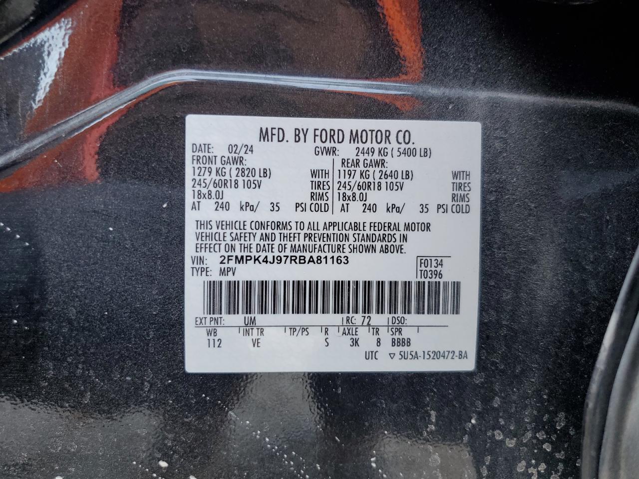 2024 FORD EDGE - 2FMPK4J97RBA81163, колір - Чорний, 2.0, Бензин, Повний привід із США