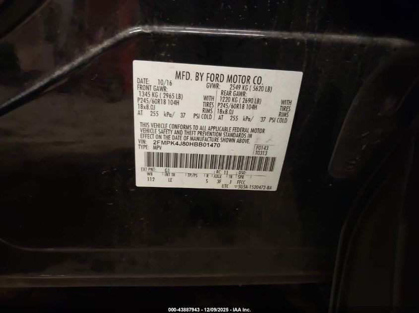 2017 FORD EDGE - 2FMPK4J80HBB01470, колір - Чорний, 3.5, Бензин, Повний привід із США