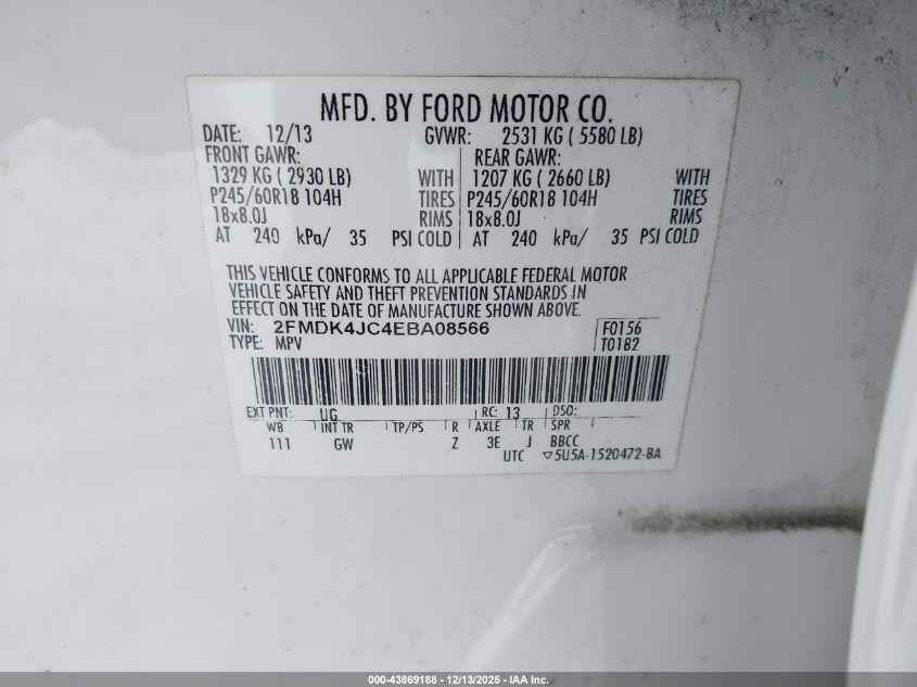 2014 FORD EDGE - 2FMDK4JC4EBA08566, колір - Білий, 3.5, Бензин, Повний привід із США