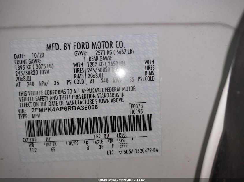 2024 FORD EDGE - 2FMPK4AP6RBA36066, колір - Білий, 2.7, Бензин, Повний привід із США