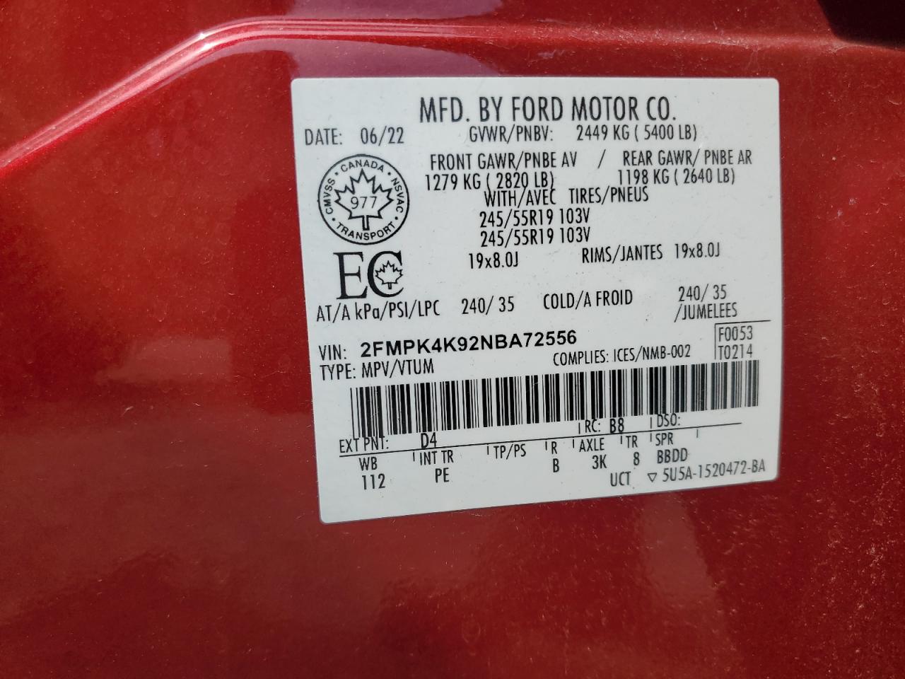 2022 FORD EDGE - 2FMPK4K92NBA72556, колір - Червоний, 2.0, Бензин, Повний привід із США