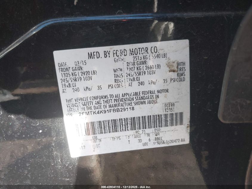 2015 FORD EDGE - 2FMTK4K91FBB29118, колір - Чорний, 2.0, Бензин, Повний привід із США
