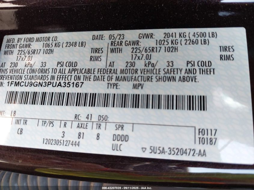 Колір БордовийЦиліндри 3Привід Повний привідVIN 1FMCU9GN3PUA35167Стан Заводиться та їде (перевірено)Ушкодження Передня або задня