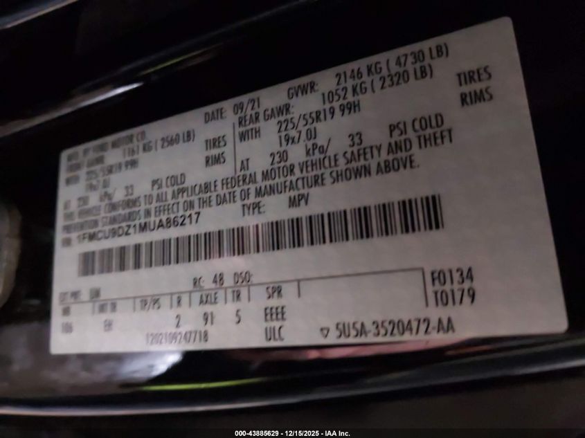 2021 FORD ESCAPE HYBRID - 1FMCU9DZ1MUA86217, колір - , 2.5, Гібрид, Повний привід із США