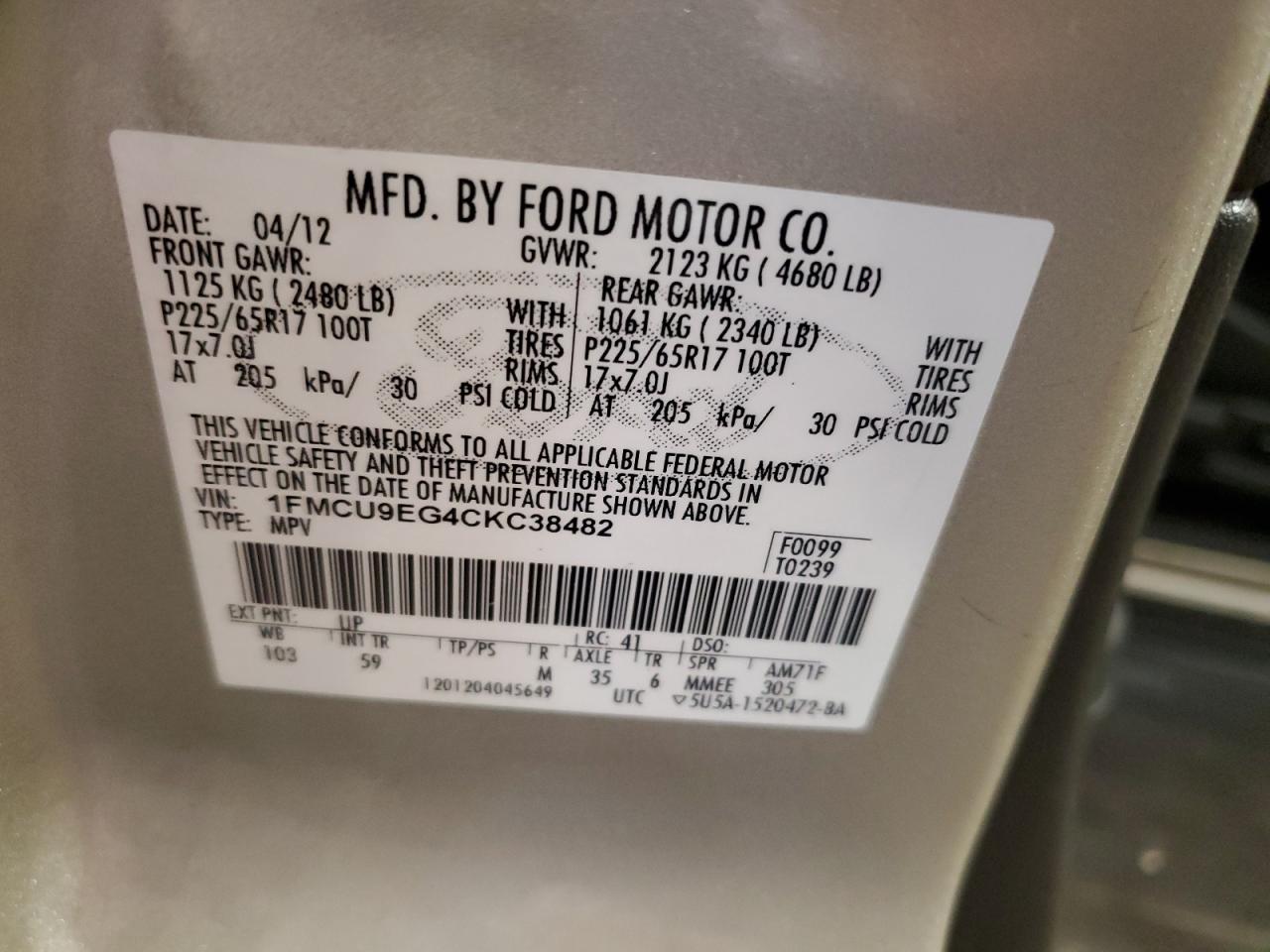 Колір КремовийЦиліндри 6Привід Повний привідVIN 1FMCU9EG4CKC38482Стан Заводиться та їде (перевірено)Ушкодження Задня