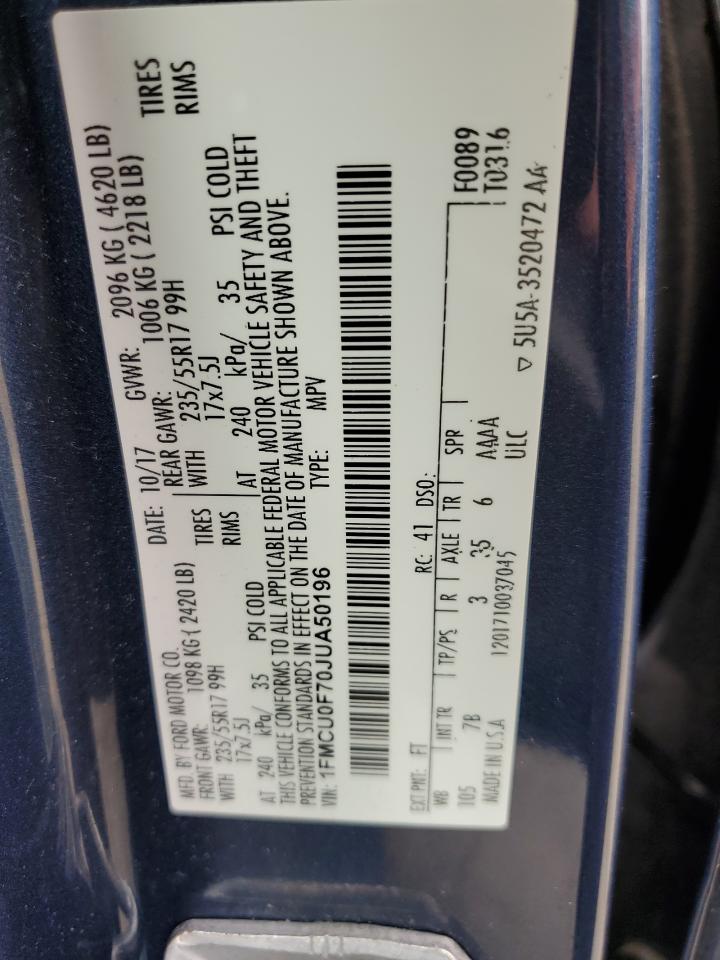 Колір СинійЦиліндри 4VIN 1FMCU0F70JUA50196Стан Заводиться та їде (перевірено)Ушкодження Передня або задня