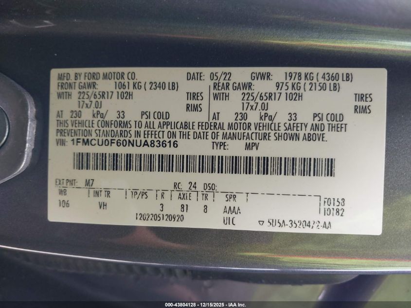 2022 FORD ESCAPE S