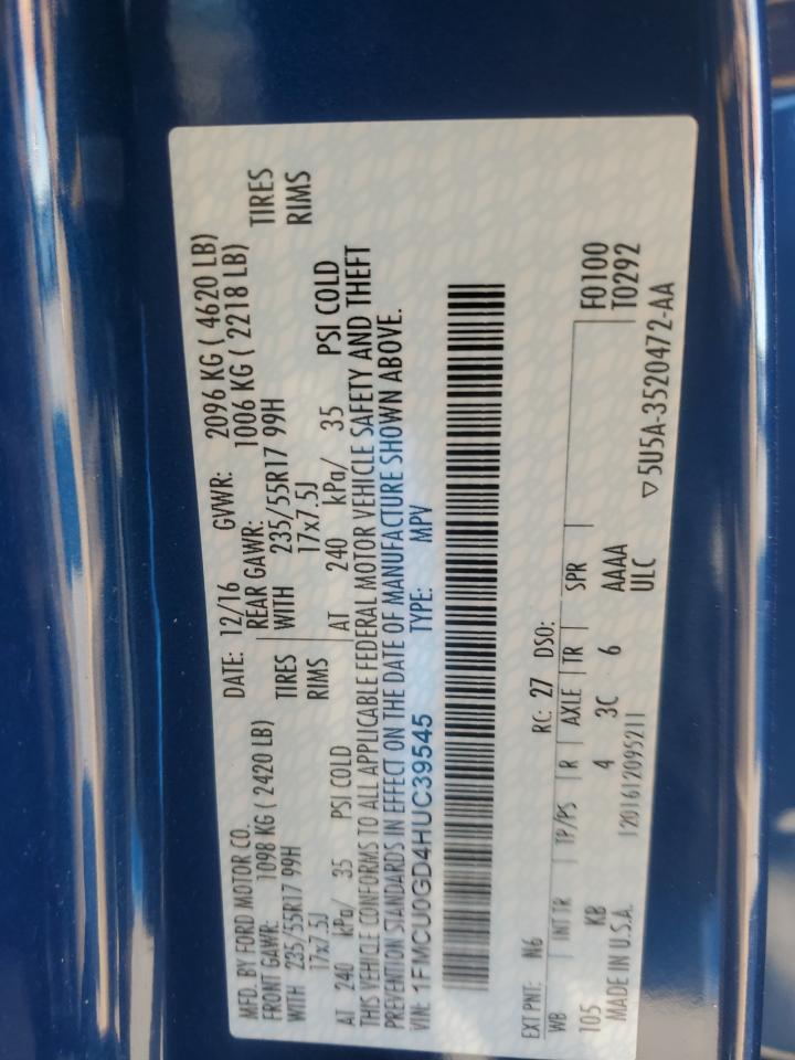 2017 FORD ESCAPE - 1FMCU0GD4HUC39545, колір - Синій, 1.5, Бензин, із США