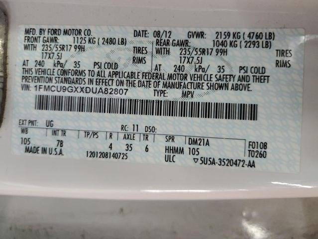 2013 FORD ESCAPE - 1FMCU9GXXDUA82807, колір - Білий, 1.6, Бензин, 4x4 з переднім приводом із США