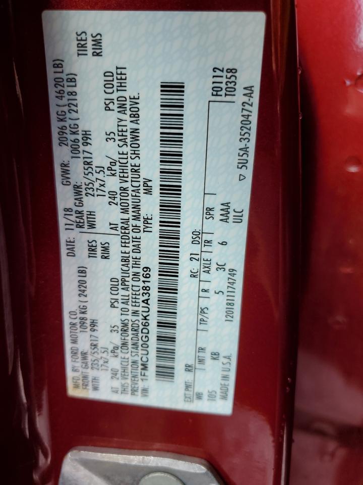2019 FORD ESCAPE - 1FMCU0GD6KUA38169, колір - Червоний, 1.5, Бензин, із США