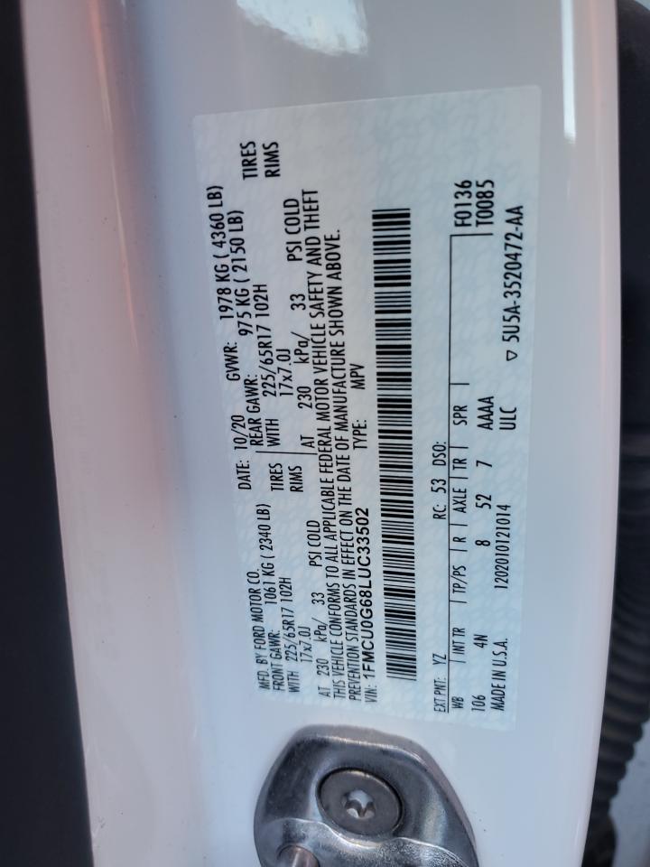 2020 FORD ESCAPE - 1FMCU0G68LUC33502, колір - Білий, 1.5, Бензин, із США