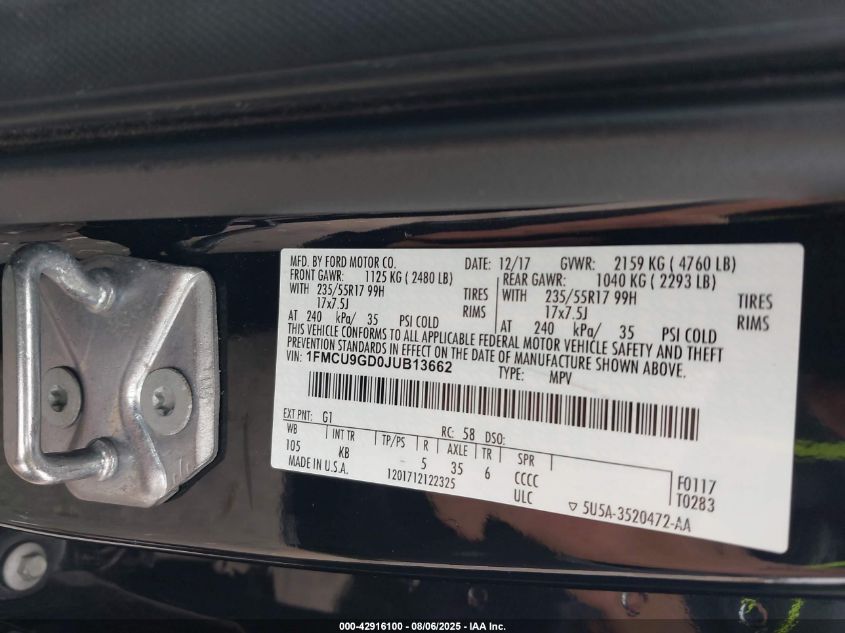 2018 FORD ESCAPE - 1FMCU9GD0JUB13662, колір - Чорний, 1.5, Бензин, Повний привід із США
