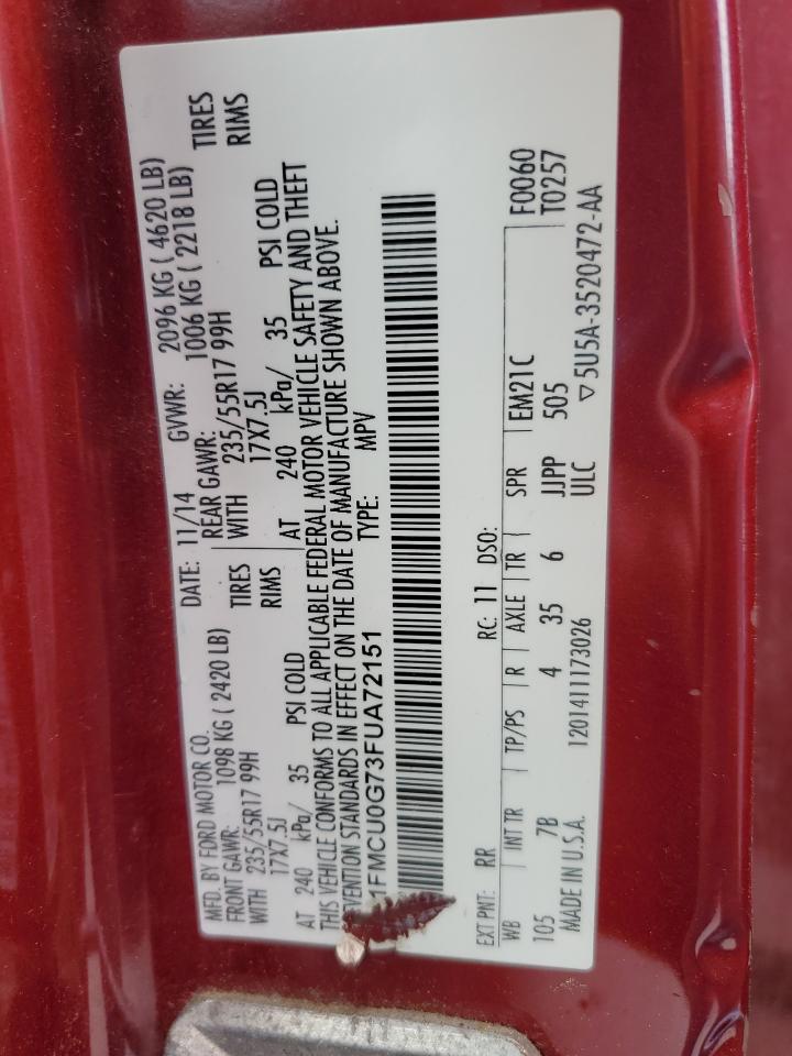 Колір ЧервонийЦиліндри 4VIN 1FMCU0G73FUA72151Стан НевідомоУшкодження ВандалізмДата аукціона 2025-10-08