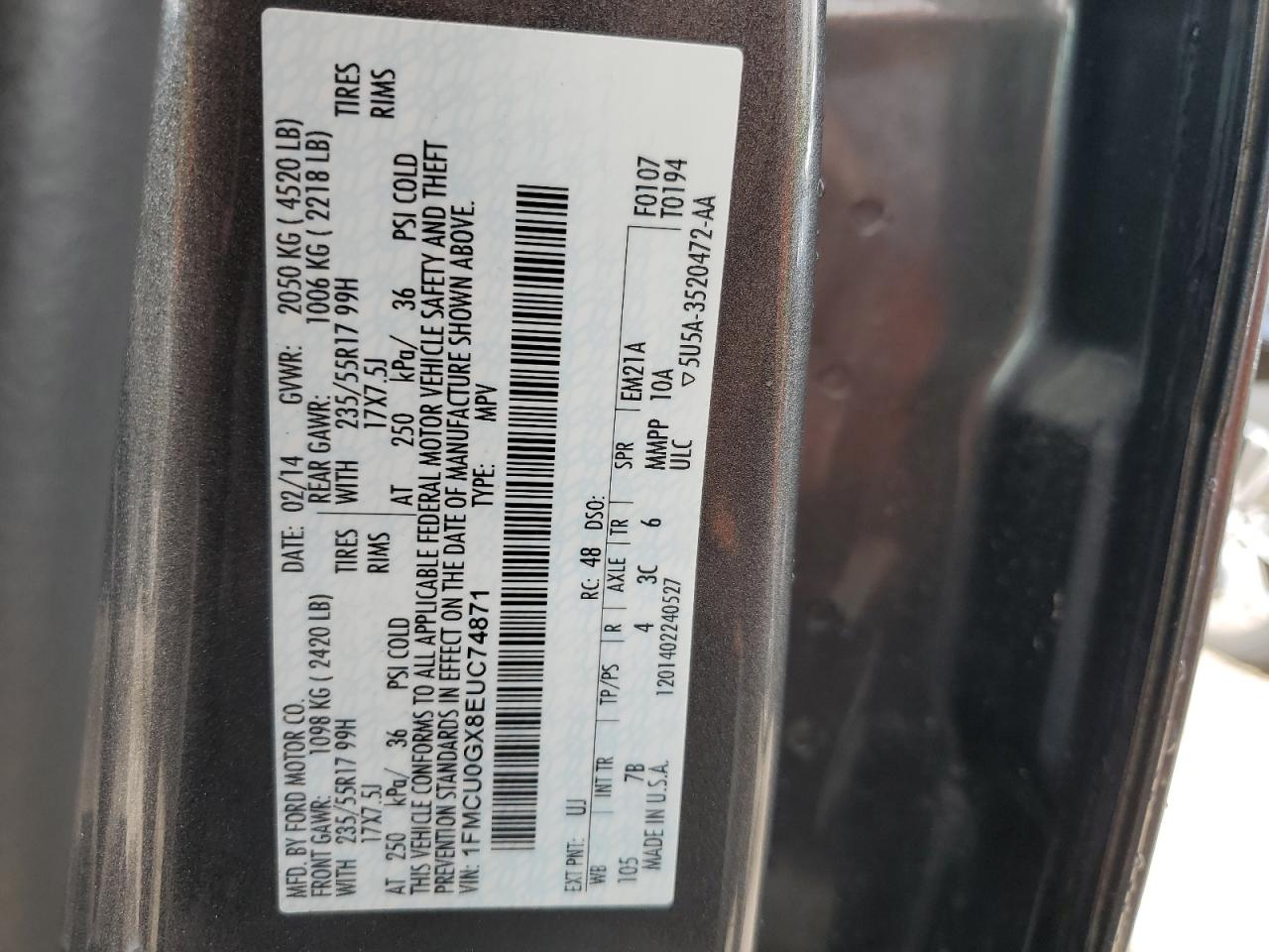2014 FORD ESCAPE - 1FMCU0GX8EUC74871, колір - Сірий, 1.6, Бензин, із США
