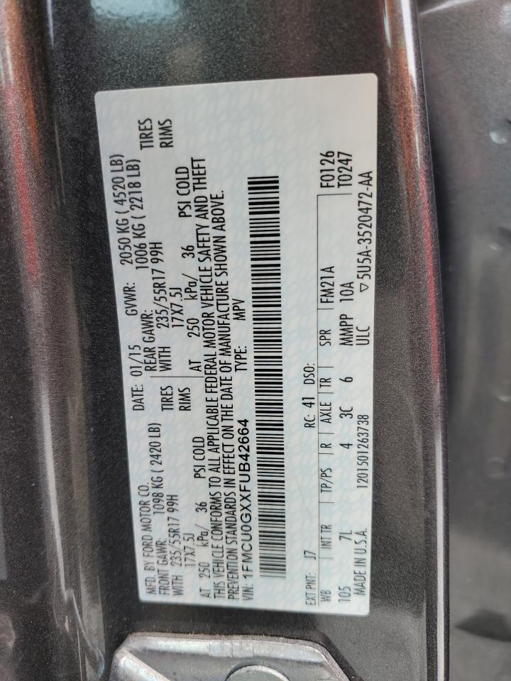 2015 FORD ESCAPE - 1FMCU0GXXFUB42664, колір - Сірий, 1.6, Бензин, із США
