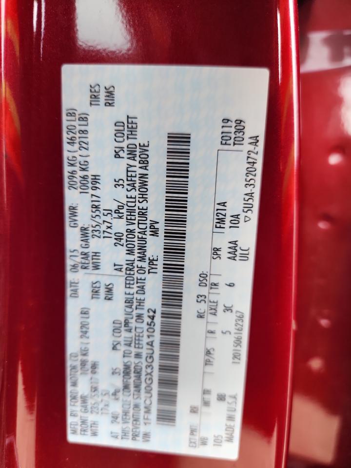 2016 FORD ESCAPE - 1FMCU0GX3GUA10542, колір - Червоний, 1.6, Бензин, із США
