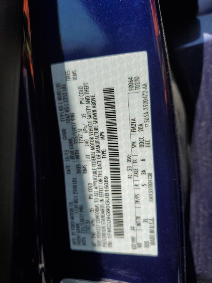 2016 FORD ESCAPE - 1FMCU9G90GUB15089, колір - Синій, 2.0, Бензин, 4x4 з переднім приводом із США