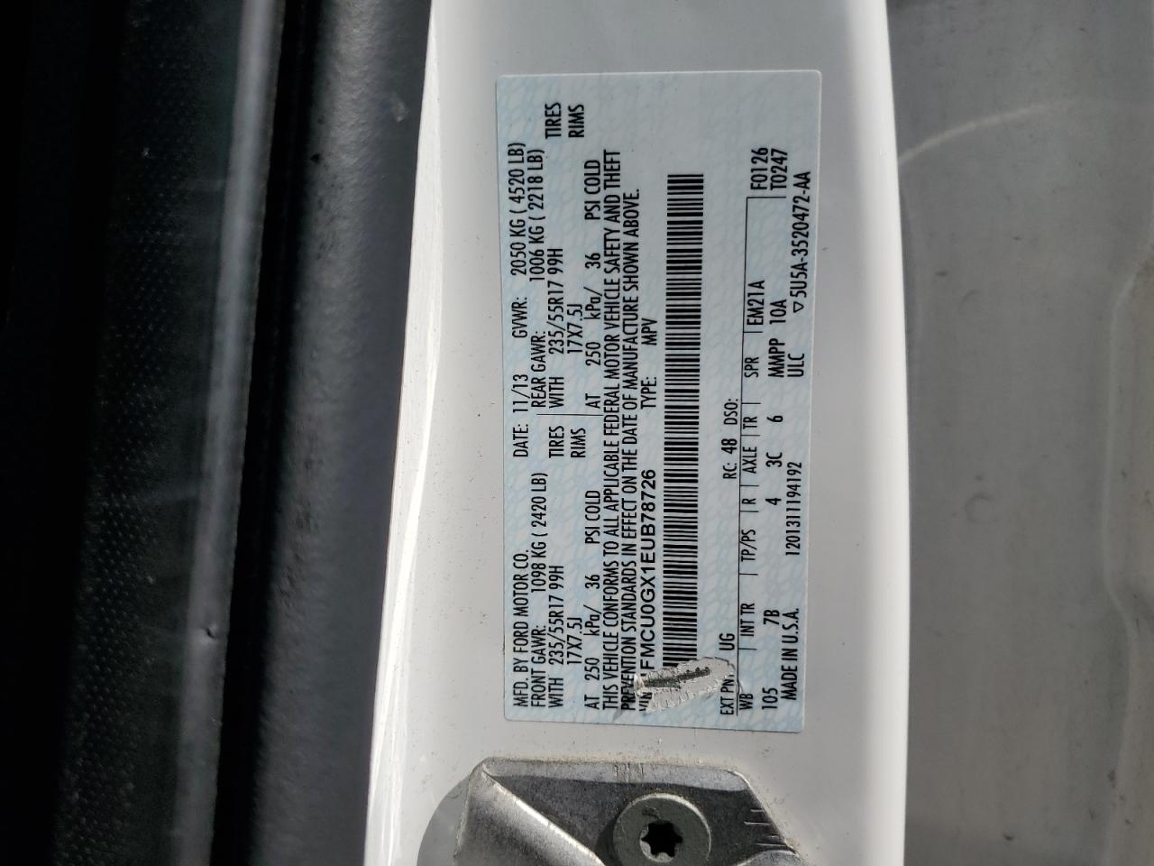 Колір БілийЦиліндри 4VIN 1FMCU0GX1EUB78726Стан Заводиться та їде (перевірено)Ушкодження З боків