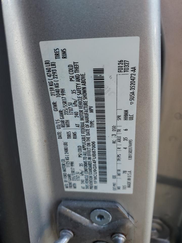 2015 FORD ESCAPE - 1FMCU9GX4FUB87006, колір - Срібний, 1.6, Бензин, 4x4 з переднім приводом із США
