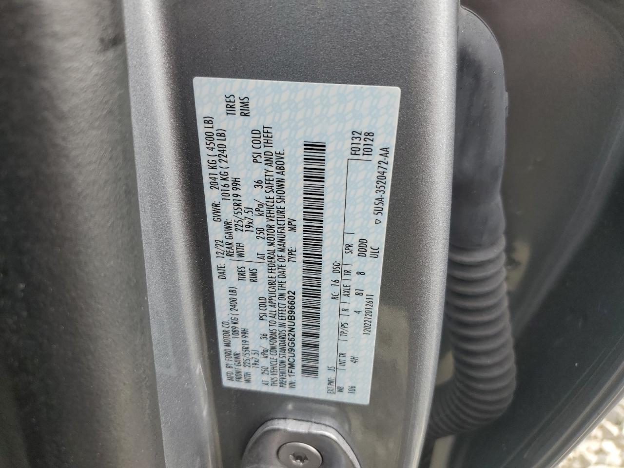 Колір СрібнийЦиліндри 3Привід 4x4 з переднім приводомVIN 1FMCU9G62NUB96602Стан ЗаводитьсяУшкодження НезначніДата аукціона 2025-10-09