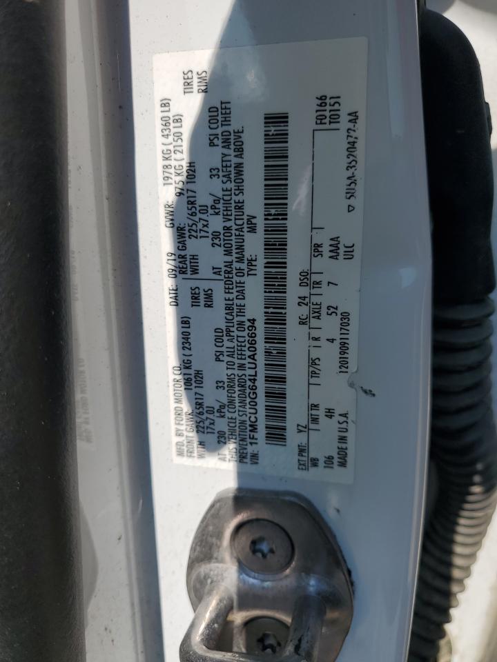2020 FORD ESCAPE - 1FMCU0G64LUA06694, колір - Білий, 1.5, Бензин, із США