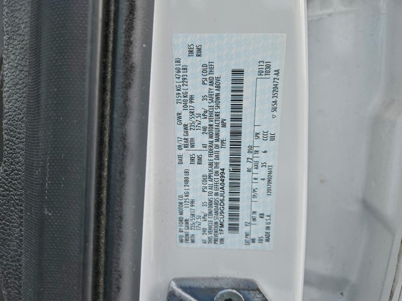 2018 FORD ESCAPE - 1FMCU9GD6JUA04994, колір - Білий, 1.5, Бензин, 4x4 з переднім приводом із США