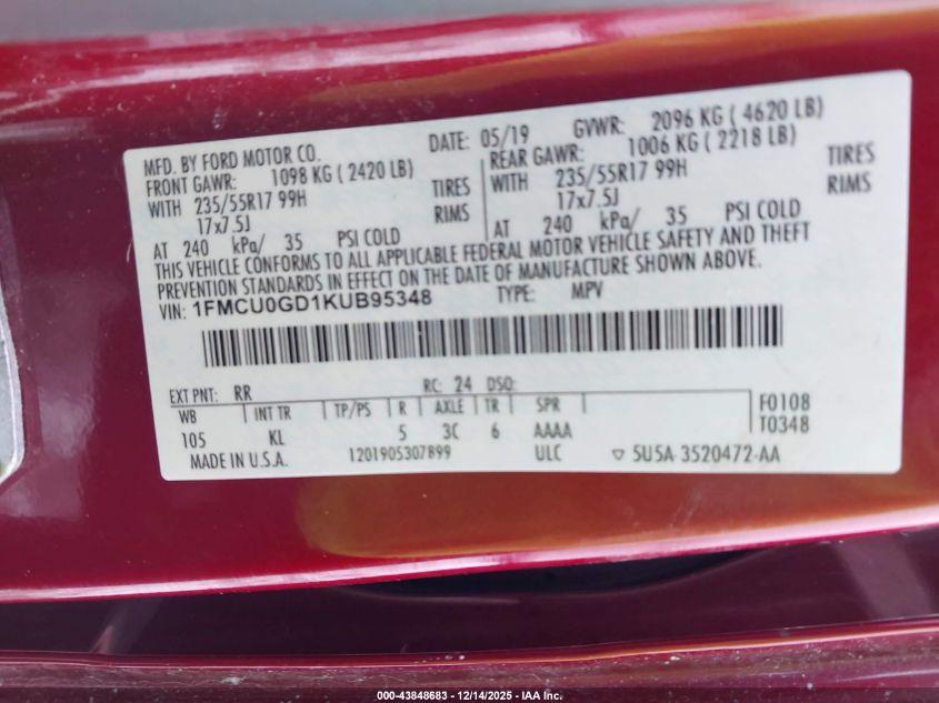 2019 FORD ESCAPE - 1FMCU0GD1KUB95348, колір - Червоний, 1.5, Бензин, Передній привід із США