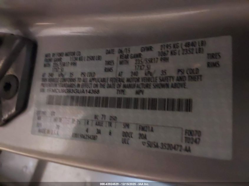 Колір СрібнийЦиліндри 4Привід Повний привідVIN 1FMCU9G93GUA14368Стан Заводиться та їде (перевірено)Ушкодження Передня або задня