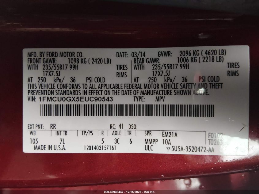 Колір ЧервонийЦиліндри 4Привід Передній привідVIN 1FMCU0GX5EUC90543Стан Заводиться та їде (перевірено)Ушкодження Передня або задня