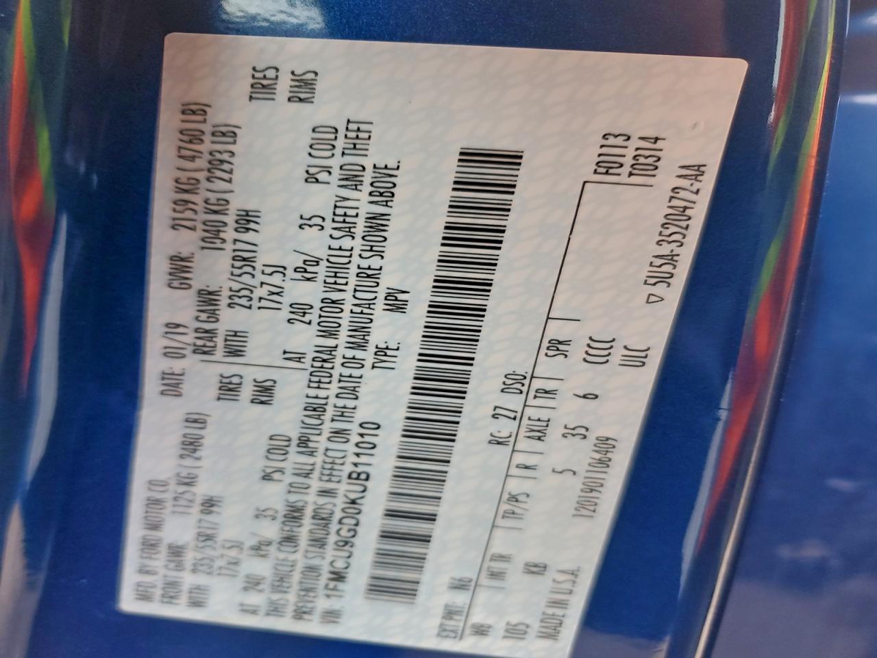 Колір СинійЦиліндри 4Привід 4x4 з переднім приводомVIN 1FMCU9GD0KUB11010Стан ЗаводитьсяУшкодження Передня або задня