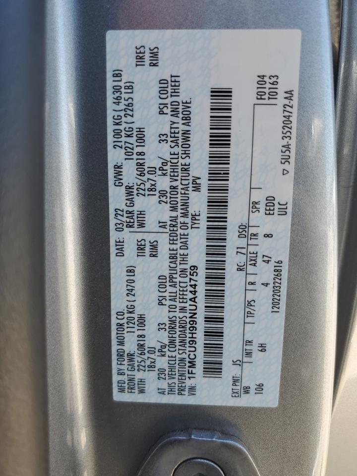 2022 FORD ESCAPE - 1FMCU9H99NUA44759, колір - Срібний, 2.0, Бензин, 4x4 з переднім приводом із США