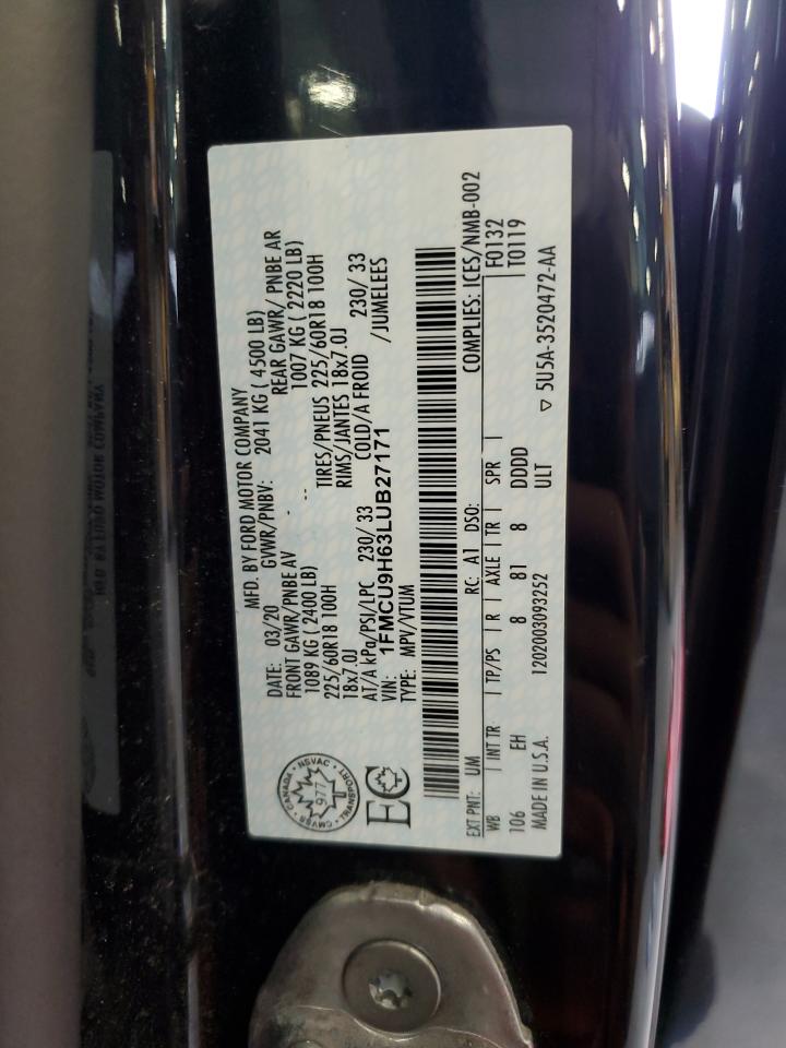 2020 FORD ESCAPE - 1FMCU9H63LUB27171, колір - Чорний, 1.5, Бензин, 4x4 з переднім приводом із США
