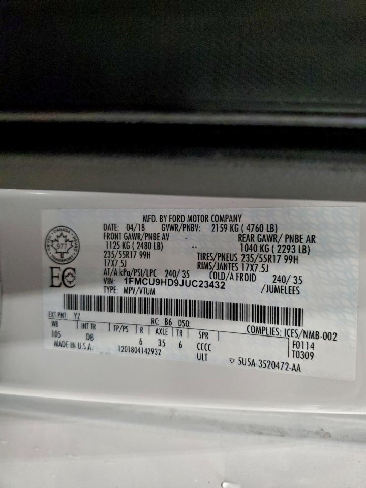 2018 FORD ESCAPE - 1FMCU9HD9JUC23432, колір - Білий, 1.5, Бензин, 4x4 з переднім приводом із США