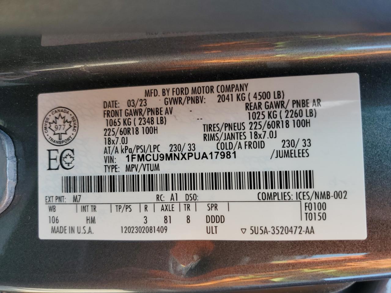2023 FORD ESCAPE - 1FMCU9MNXPUA17981, колір - Сірий, 1.5, Бензин, 4x4 з переднім приводом із США