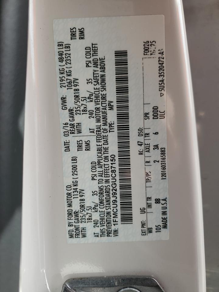 2016 FORD ESCAPE - 1FMCU9J92GUC87150, колір - Білий, 2.0, Бензин, 4x4 з переднім приводом із США