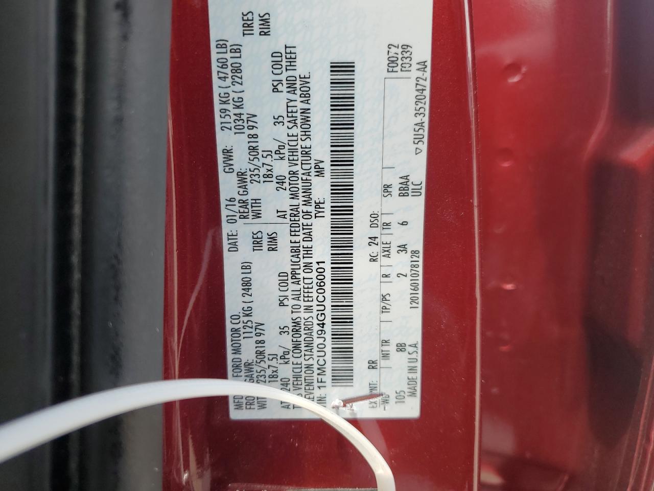 2016 FORD ESCAPE - 1FMCU0J94GUC06001, колір - Бургундія, 2.0, Бензин, із США