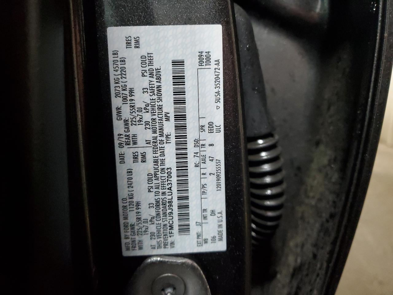 Колір СірийЦиліндри 4Привід 4x4 з переднім приводомVIN 1FMCU9J98LUA37003Стан Заводиться та їде (перевірено)Ушкодження Задня