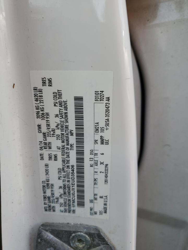 2014 FORD ESCAPE - 1FMCU0JX1EUD35406, колір - Білий, 1.6, Бензин, із США