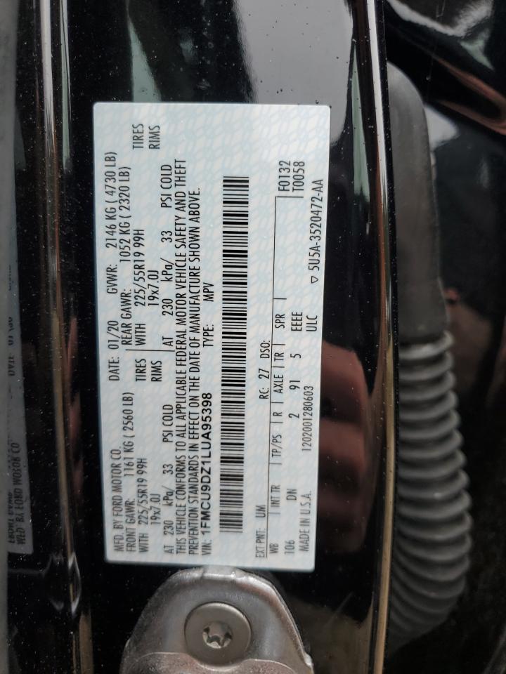 2020 FORD ESCAPE - 1FMCU9DZ1LUA95398, колір - Чорний, 2.5, Гібрид, 4x4 з переднім приводом із США