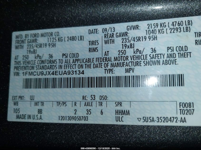 Колір СірийЦиліндри 4Привід Повний привідVIN 1FMCU9JX4EUA93134Стан Заводиться та їде (перевірено)Ушкодження Задня