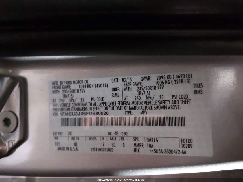 Колір СрібнийЦиліндри 4Привід Передній привідVIN 1FMCU0JX6FUB80028Стан Заводиться та їде (перевірено)Ушкодження Передня або задня
